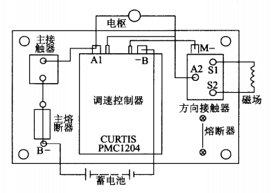 新牛頓叉車將柯蒂斯速控制器用于電動堆高車、蓄電池牽引車上,其工作電壓40V,最大允許電流 175A~275A,5min 額定電流 130A~200A,1h 工作電流75A~125A,柯蒂斯控制器的結構如下圖所示。